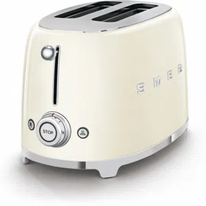 TSF01BLEU brødristeren fra Smeg er en stilfuld brødrister i 50’er-stil til to skiver. Brødristeren er fremstillet af lakeret stål i en flot sort farve med den forkromede drejeknap.