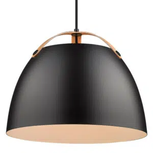 Rivoli pendel Ø40 cm i sort med krom top, er med hvidlakeret inderskærm, som giver den perfekte refleksion af lyset og presser lyset fra pærer ud af lampen for at få så meget lys ned på et evt. bord. Rivoli er designet af Michael Waltersdorff, og sender et klar budskab om dansk design. Rivoli er et design som man roligt kan kalde tidsløs. Med det hvide inderglas sikre man at pæren bliver kapslet ind og sikre at man ikke bliver blindet at pærer og at man får det perfekte lys. Denne model her leveres med stofledning der giver det sidste pift er flotte detaljer. Rivoli er med E27 fatning så der er lagt optil mange muligheder for at sætte den rette belysning. Rivoli er en serie af lamper lige fra små pendler til bord tilgulvlamper.